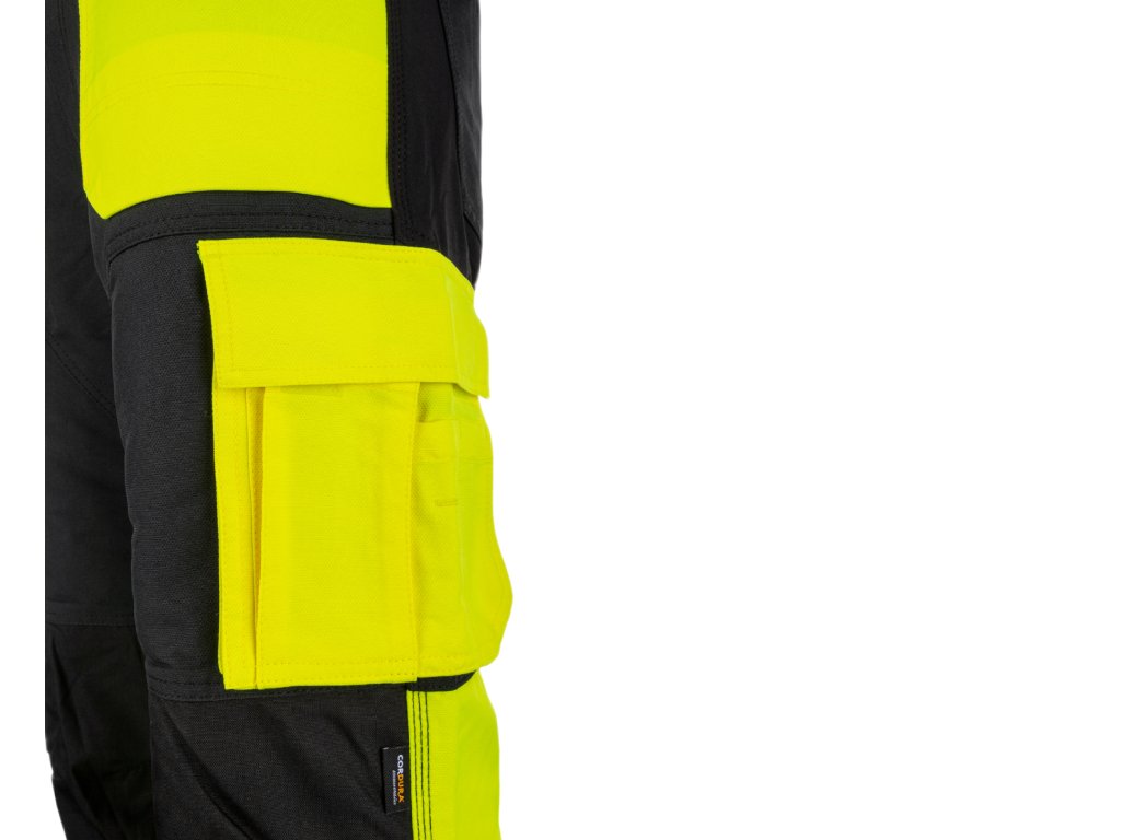 Pánské strečové pracovní kalhoty splňující normu vysoké viditelnosti třídy 1.