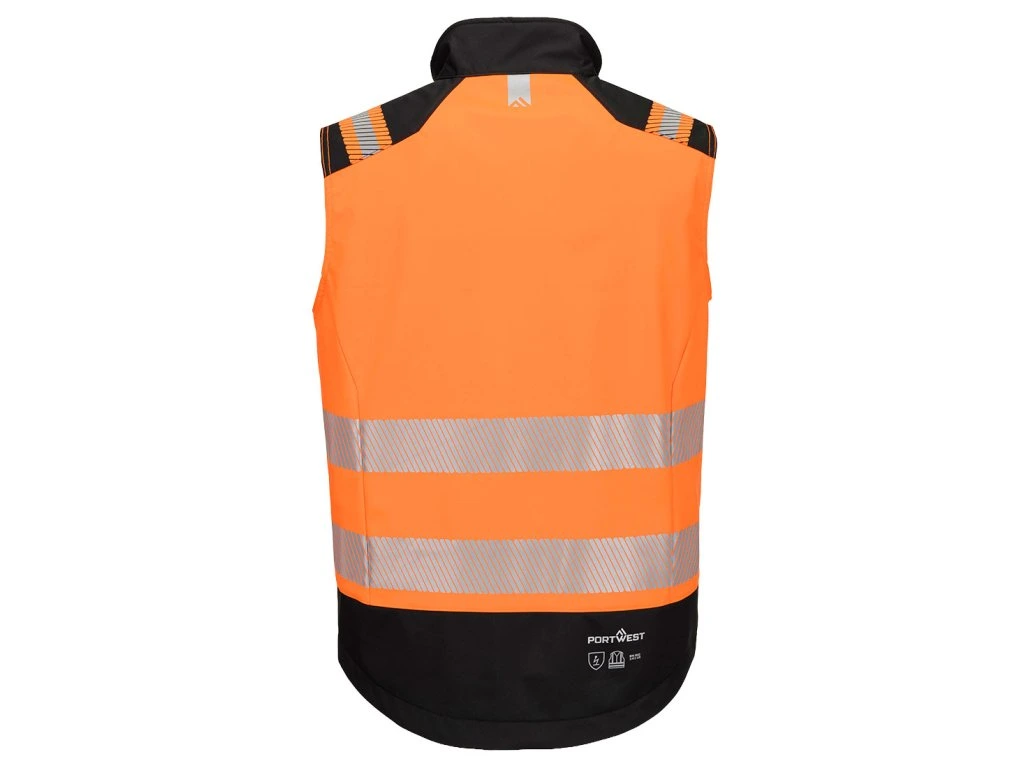 PW3 FR Modaflame Hi-Vis softshellová vesta s vysokou viditelností je vyrobena z vysoce ochranné 3vrstvé softshellové tkaniny. Mezi prvky patří tepelně aplikovaná segmentová páska, poutka na vysílačku a 2 přední kapsy na zip.