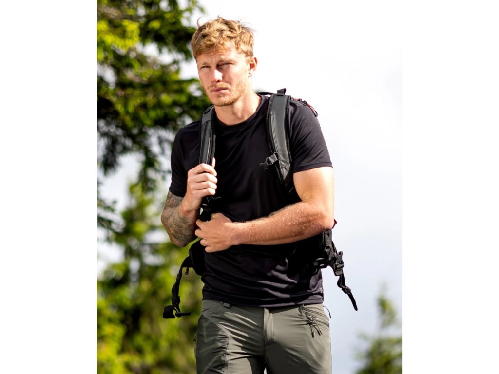 Pánské funkční tričko s krátkým rukávem zaujme propracovaným žakárovým vzorem, který je inspirován geometrickými motivy. Lehký a odolný materiál obsahuje recyklovaná vlákna, je šetrnější k přírodě a zároveň zajišťuje dlouhou životnost. Originálně navržená struktura tkaniny propůjčuje tričku prémiový vzhled a poskytuje vysokou prodyšnost a pohodlí po celý den. Design je doplněn stylovým reflexním potiskem. Skvělá volba pro všechny outdoorové, sportovní i volnočasové aktivity.