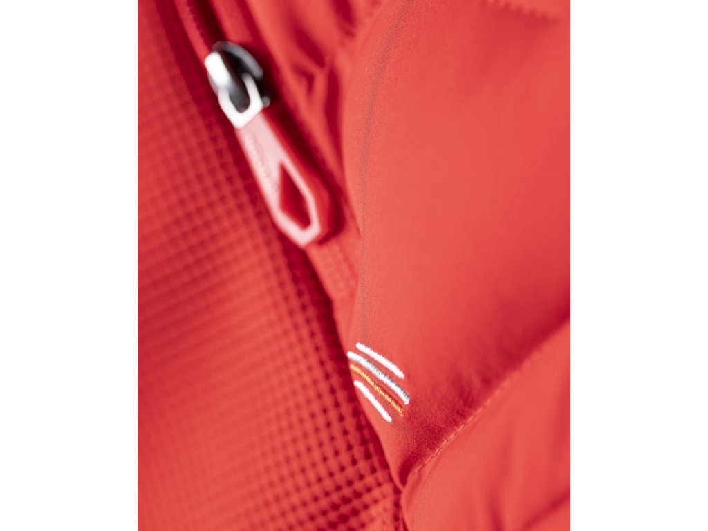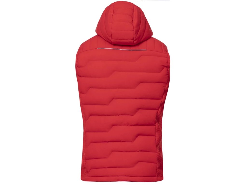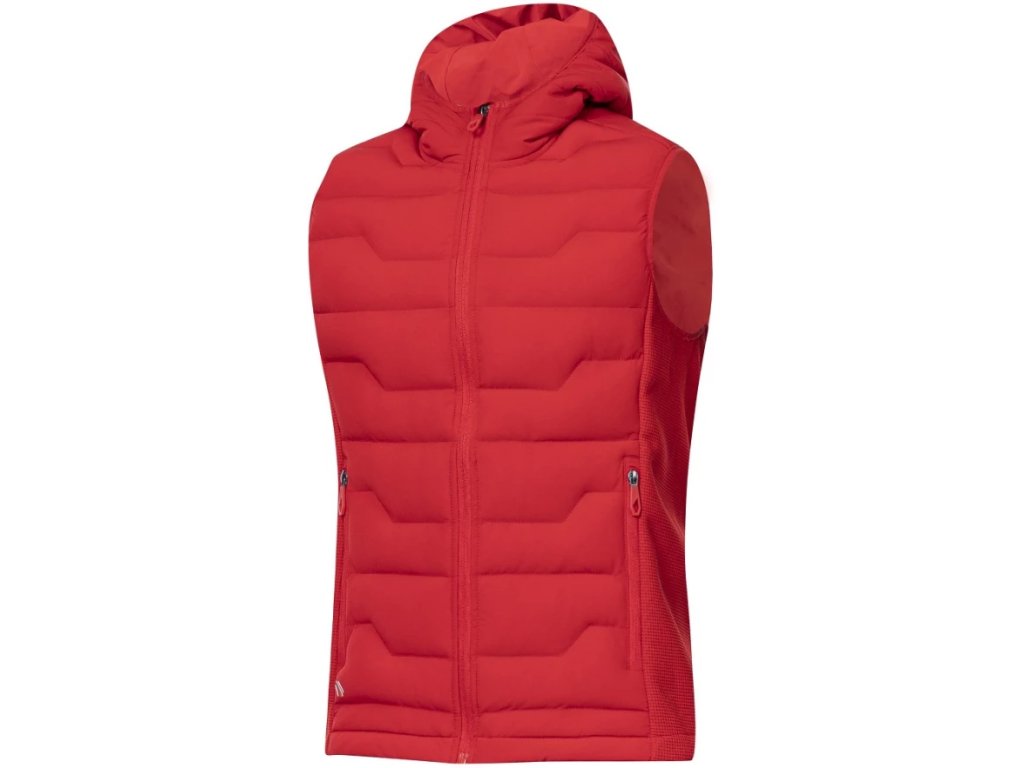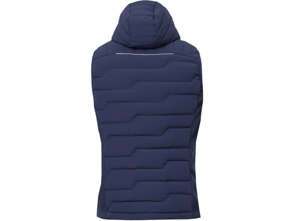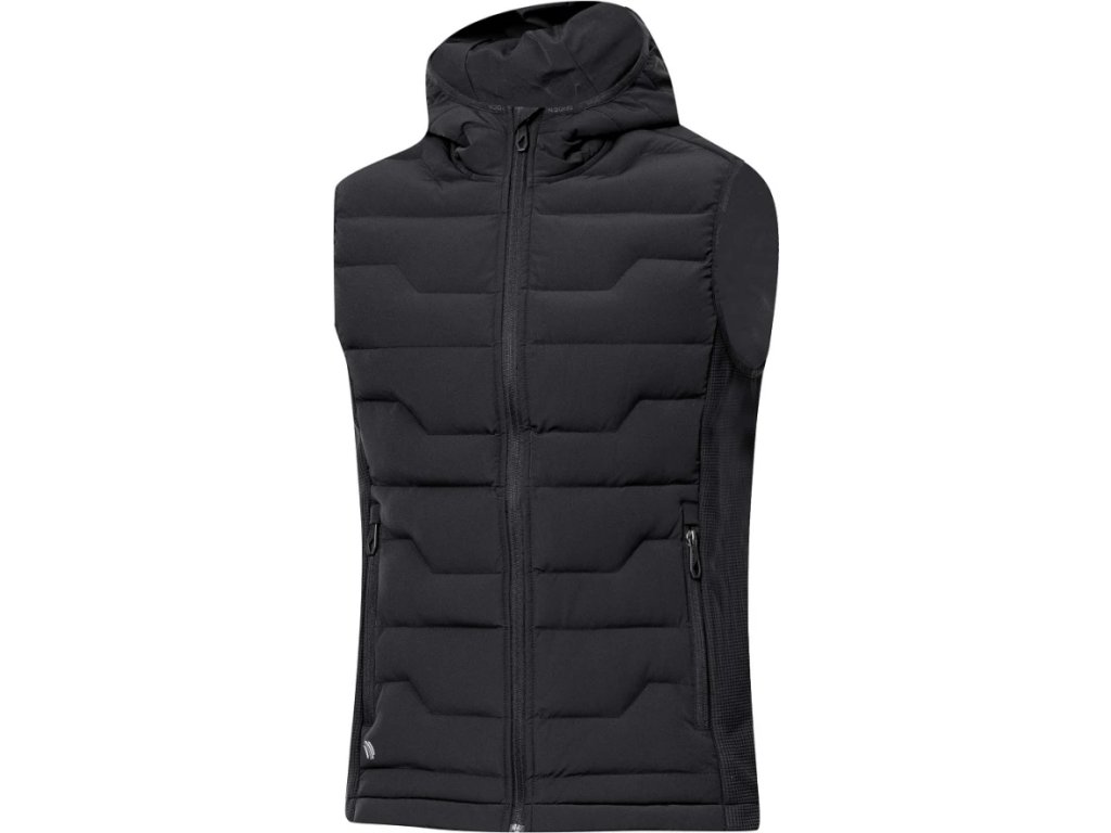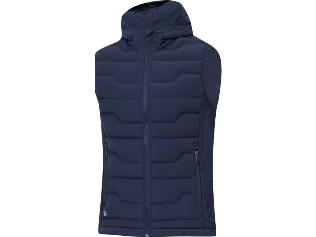 - Vesta je vybavena průběžným zipem s krytkou brady, bočními zipovými kapsami, celkový design dotváří prošívaná kapuce