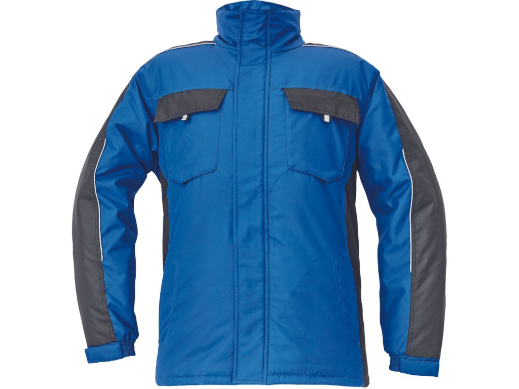 Pánská zimní bunda se zapínáním na zip kryté légou na suchý zip. A kapuce složená v límci. 2 boční kapsy, 2 náprsní kapsy na suchý zip; 1 vnitřní kapsa na mobilní telefon; elastické manžety rukávů se suchým zipem; reflexní prvky.